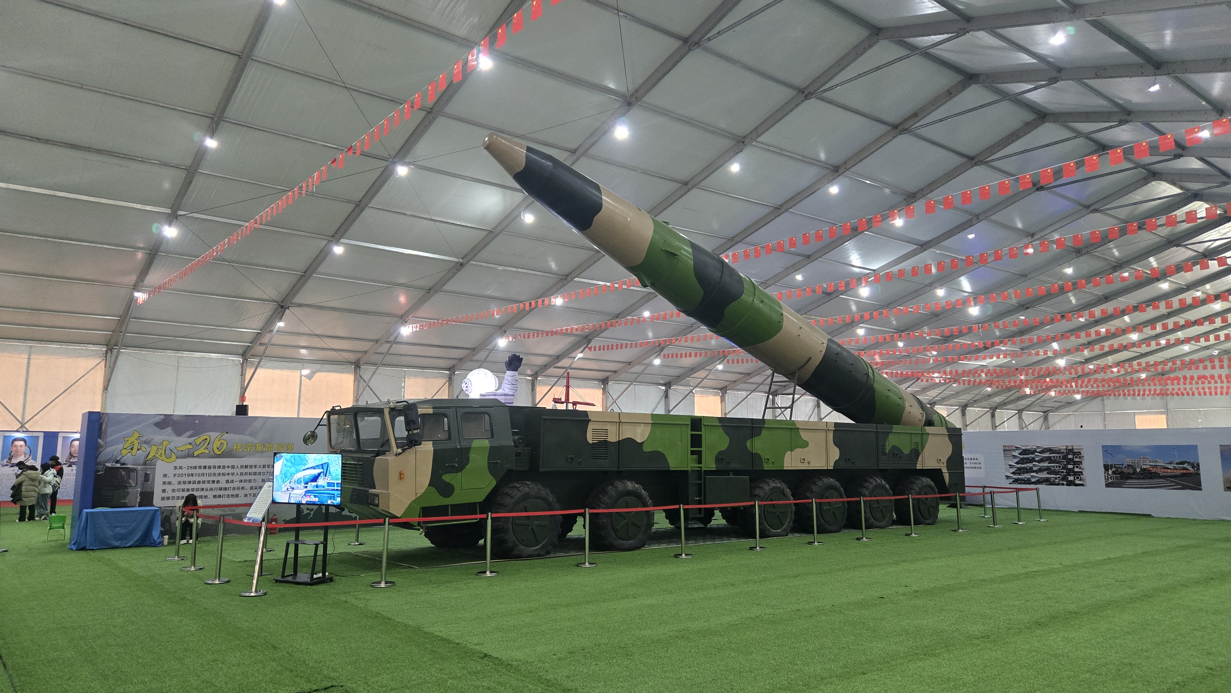 “东风快递使命必达”展区,东风系列导弹等现代国防装备模型气势恢宏,引得不少军事爱好者驻足拍照。专业讲解员通过通俗的语言拆解装备原理,深入阐释其战略意义与国防价值,让观众深刻认识到国家战略安全力量的坚实根基,进一步强化了全民国防安全意识。
