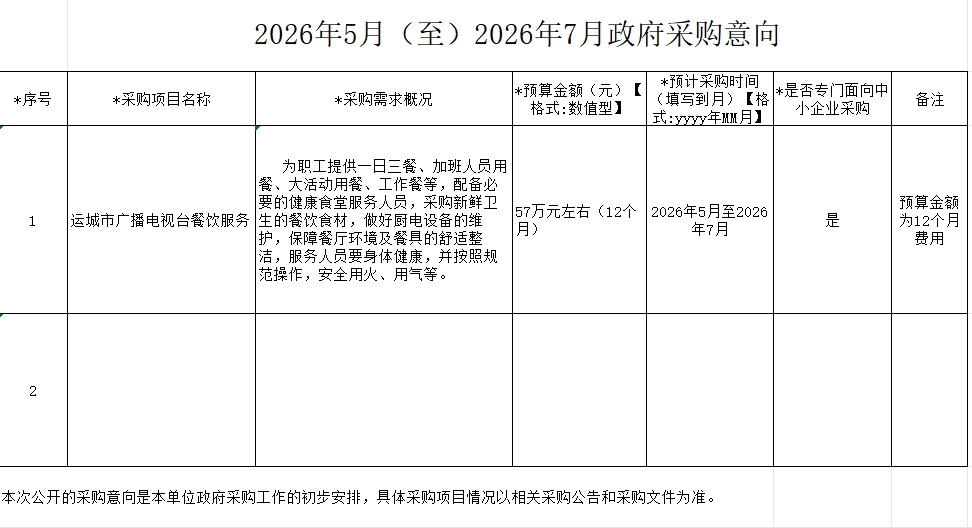 2026年5月(至)2026年7月政府采购意向